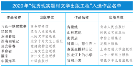 - 2020-12-152020“優秀現實題材文學出版工程”入選作品揭曉