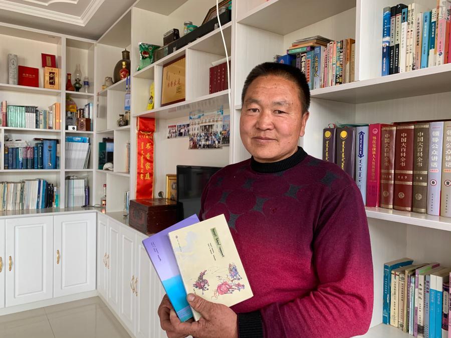 “高中畢業后我回鄉放牧,起初想看書也找不到書,后來外出打工才讀到更多的書,收藏的書也多了。”提及往事,孟克達來仍記憶猶新,“文學書、歷史書、工具書,我全都愛讀。”