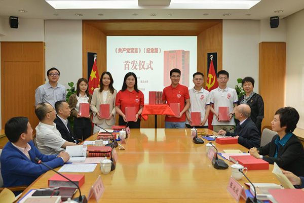 復(fu)旦大學黨委書(shu)記焦揚表示,本次推出的(de)(de)《共(gong)產(chan)黨宣言》(紀念版),真實(shi)還原(yuan)了(le)復(fu)旦老校長陳望道先生首(shou)譯這部經典之作的(de)(de)歷史場景(jing),對不少地方作了(le)細致解讀(du),既是一套十分(fen)寶貴的(de)(de)歷史藏本,又是一部很有價值的(de)(de)學習教(jiao)材。