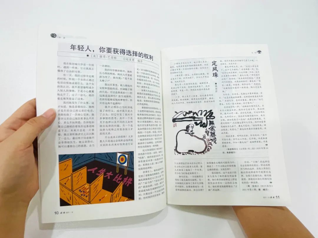 《讀(du)者》就(jiu)是(shi)這樣的(de)雜志。隨手拿起(qi)一冊(ce),任(ren)意翻開一頁(ye)就(jiu)能讀(du)得(de)進去。不必(bi)在乎它(ta)是(shi)什么欄目,大人孩子都能讀(du)出(chu)樂趣,讀(du)出(chu)感悟。