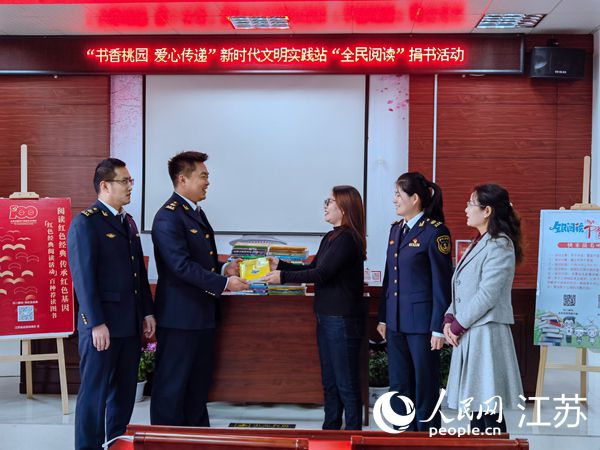 連云港航標(biao)處向墟溝(gou)街道桃園社區捐贈圖書。張晗攝