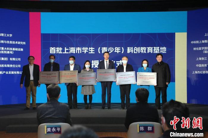首批上海市(shi)學生(青少(shao)年)科(ke)創(chuang)教(jiao)育基(ji)地代(dai)表獲授牌。 上海市(shi)科(ke)技藝(yi)術教(jiao)育中心供圖(tu)