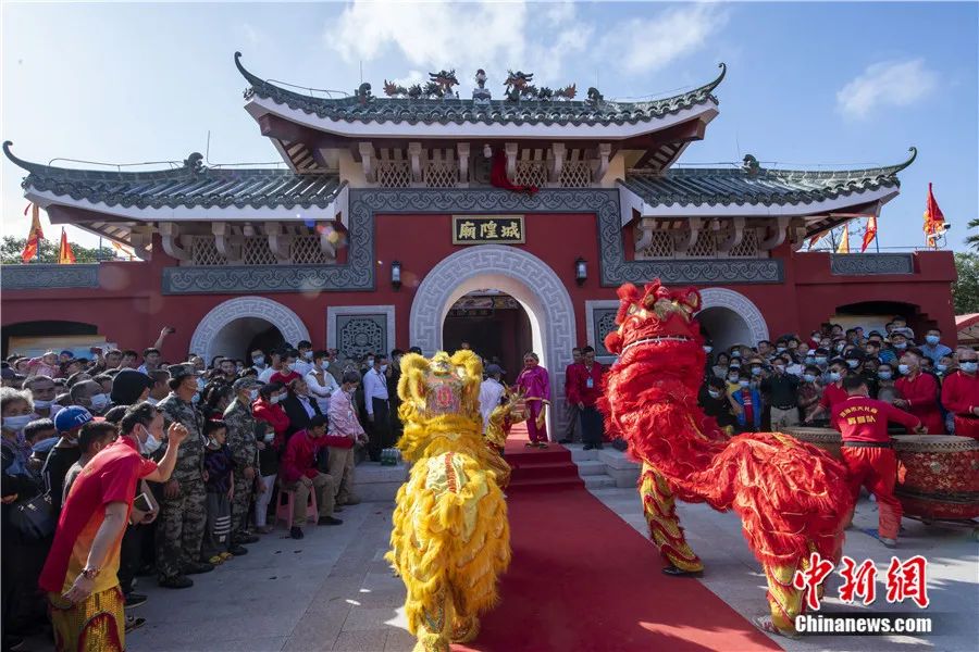 2020年12月,海南(nan)瓊海,民眾在城隍廟前舉(ju)行回火(huo)安座慶典。中新社發 蒙鐘德 攝