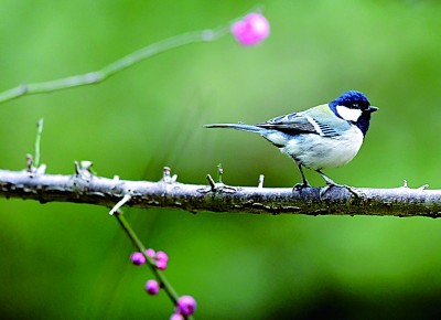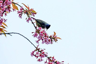 湖南省龍山縣,花兒開放,引來小鳥“鬧春戲花”。新華社發