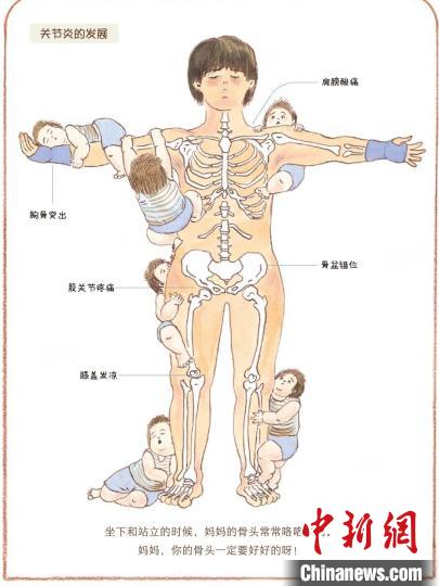 《我的媽媽》內文圖,展現了產(chan)后媽媽會發生的骨骼疼痛 接力(li)出版社供(gong)圖
