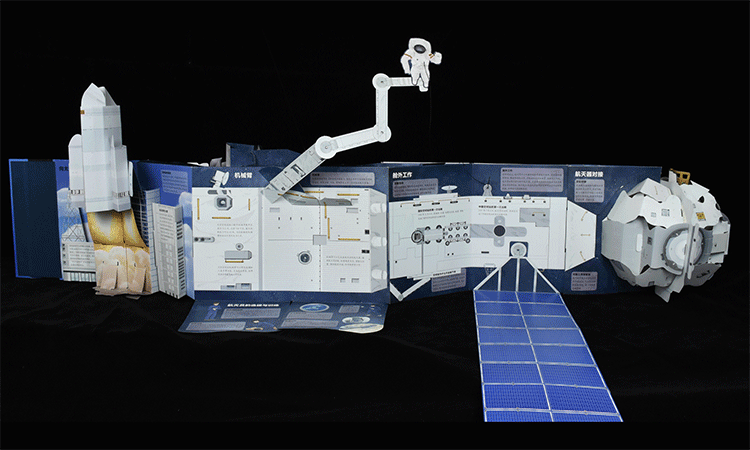 圖(tu)為《繁星(xing)作伴好還(huan)鄉:空間站全景立(li)體書》展(zhan)開側面圖(tu)