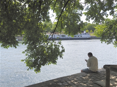 在(zai)法國塞納河畔,一名(ming)讀者(zhe)正在(zai)讀書。記者(zhe) 劉玲玲攝