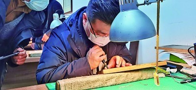 專(zhuan)家在雕刻古籍書(shu)板(ban) 資料圖片