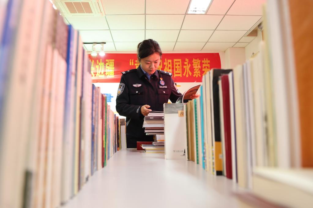 民警在圖書室里閱讀(du)書籍(ji)。(張(zhang)雨強攝)
