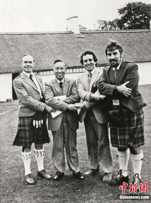 1982年(nian)7月,王(wang)佐良(左二(er))在蘇格蘭詩人彭斯的(de)故(gu)鄉(xiang)歐文(wen)城。王(wang)佐良是最早譯介彭斯的(de)譯者(zhe)之一。中新社(she)發 受訪者(zhe)供(gong)圖(tu)