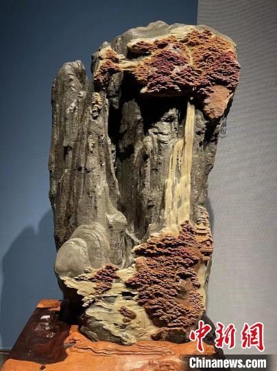 正是因為(wei)帶著這些想法,在(zai)創作(zuo)《飛流直下三(san)千(qian)尺(chi)》時,徐(xu)偉軍(jun)并不(bu)是在(zai)山(shan)石頂端直接刻出瀑(pu)布,而(er)是讓瀑(pu)布從一片松林中(zhong)垂直而(er)下,“途徑”下一片松林,再(zai)流向四周,創造(zao)出瀑(pu)布的磅礴之勢。記者(zhe)看到(dao),整件作(zuo)品,氣韻(yun)生動。徐(xu)偉軍(jun)還特地(di)保留了原石粗(cu)糙的表皮,刻畫出懸崖峭(qiao)壁的嶙峋之態。
