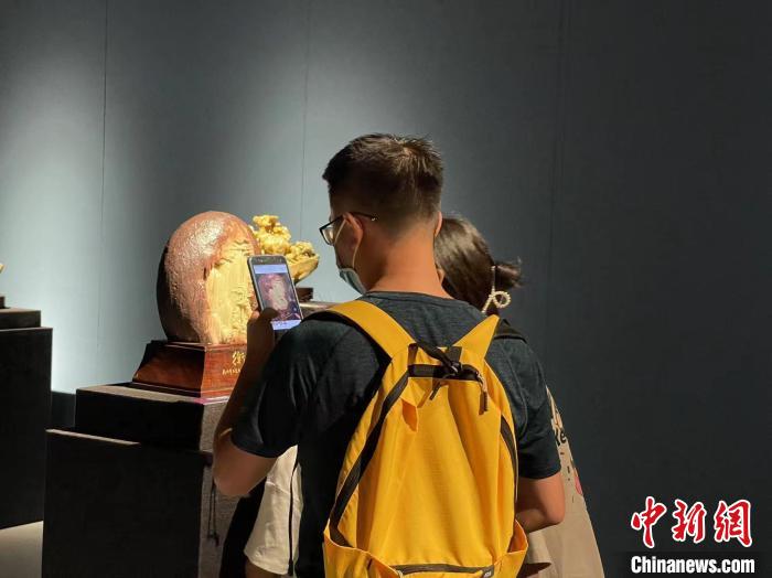 展覽現場(chang)的一件石(shi)雕作品引得觀(guan)眾拍(pai)照。 童笑雨 攝
