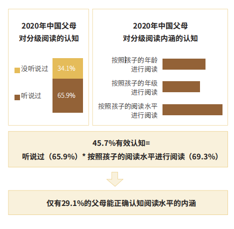雖然分(fen)(fen)級(ji)閱(yue)讀(du)(du)已經成為國際公認(ren)(ren)的閱(yue)讀(du)(du)趨勢,可(ke)是,從當當聯合艾瑞發布的《2020年中(zhong)國K12階段學生“分(fen)(fen)級(ji)閱(yue)讀(du)(du)”白(bai)(bai)皮書》(以下簡(jian)稱《白(bai)(bai)皮書》)中(zhong),我們發現中(zhong)國大(da)部分(fen)(fen)父(fu)(fu)母(mu)對于分(fen)(fen)級(ji)閱(yue)讀(du)(du)尚(shang)缺(que)乏(fa)認(ren)(ren)識,更談不上有足(zu)夠的重視(shi)。《白(bai)(bai)皮書》指(zhi)出(chu),有65.9%的父(fu)(fu)母(mu)聽說過“分(fen)(fen)級(ji)閱(yue)讀(du)(du)”,而其中(zhong)真正了解(jie)“分(fen)(fen)級(ji)閱(yue)讀(du)(du)”的父(fu)(fu)母(mu)只占(zhan)45.7%。