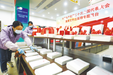 連日來,江蘇省連云港市東海縣(xian)新華(hua)書(shu)店精心設置了(le)黨的(de)二十(shi)大(da)重要文(wen)件(jian)出版(ban)物專題展臺(tai),集(ji)中展示展銷黨的(de)二十(shi)大(da)文(wen)件(jian)及學習輔導讀(du)物,同(tong)時增設閱讀(du)區,市民可以隨時閱讀(du)黨的(de)二十(shi)大(da)報告單(dan)行本、《黨的(de)二十(shi)大(da)報告輔導讀(du)本》、《中國共產黨章程》單(dan)行本等(deng)圖書(shu),吸引了(le)眾多黨員、學生(sheng)、市民和(he)機關企事(shi)業(ye)單(dan)位人員等(deng)不同(tong)群體(ti)的(de)讀(du)者前(qian)來閱讀(du)選購。