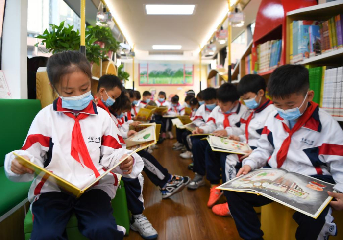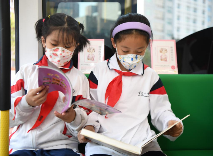 11月(yue)10日,學生在長沙市青園(yuan)友(you)誼小學巴士圖書館內閱讀。