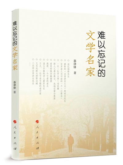 燦若星辰的(de)(de)文(wen)學名(ming)家,不僅在中(zhong)(zhong)國現當代(dai)文(wen)學史上留下(xia)口口傳誦的(de)(de)名(ming)篇(pian)佳作(zuo)(zuo)(zuo),更以他(ta)們(men)為人(ren)為文(wen)的(de)(de)高尚品德影(ying)響(xiang)世人(ren)。中(zhong)(zhong)國現代(dai)文(wen)學館(guan)征(zheng)集(ji)編目部主任慕津鋒(feng)從事文(wen)物文(wen)獻資料征(zheng)集(ji)工作(zuo)(zuo)(zuo)20余年,因工作(zuo)(zuo)(zuo)原因,曾與諸多德高望重(zhong)的(de)(de)文(wen)學名(ming)家交(jiao)往甚篤。他(ta)將這些(xie)故事記錄下(xia)來,寫成(cheng)《難以忘記的(de)(de)文(wen)學名(ming)家》一(yi)書,由(you)人(ren)民出版(ban)(ban)社出版(ban)(ban)。