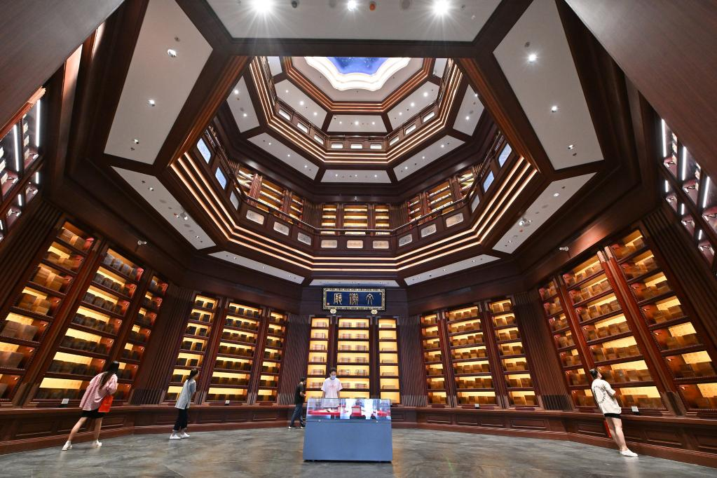 2022年(nian)7月30日,觀眾在中國(guo)(guo)國(guo)(guo)家(jia)版本(ben)館(guan)中央總(zong)館(guan)文(wen)(wen)(wen)(wen)瀚廳內參觀。中國(guo)(guo)國(guo)(guo)家(jia)版本(ben)館(guan)是國(guo)(guo)家(jia)版本(ben)資源(yuan)總(zong)庫(ku)和中華文(wen)(wen)(wen)(wen)化種子基因(yin)庫(ku),由(you)中央總(zong)館(guan)文(wen)(wen)(wen)(wen)瀚閣、西安(an)分(fen)館(guan)文(wen)(wen)(wen)(wen)濟(ji)閣、杭州分(fen)館(guan)文(wen)(wen)(wen)(wen)潤閣、廣(guang)州分(fen)館(guan)文(wen)(wen)(wen)(wen)沁閣組(zu)成(cheng),歷時(shi)三年(nian)建設,全面履行(xing)國(guo)(guo)家(jia)版本(ben)資源(yuan)保藏傳承的職責(ze)。