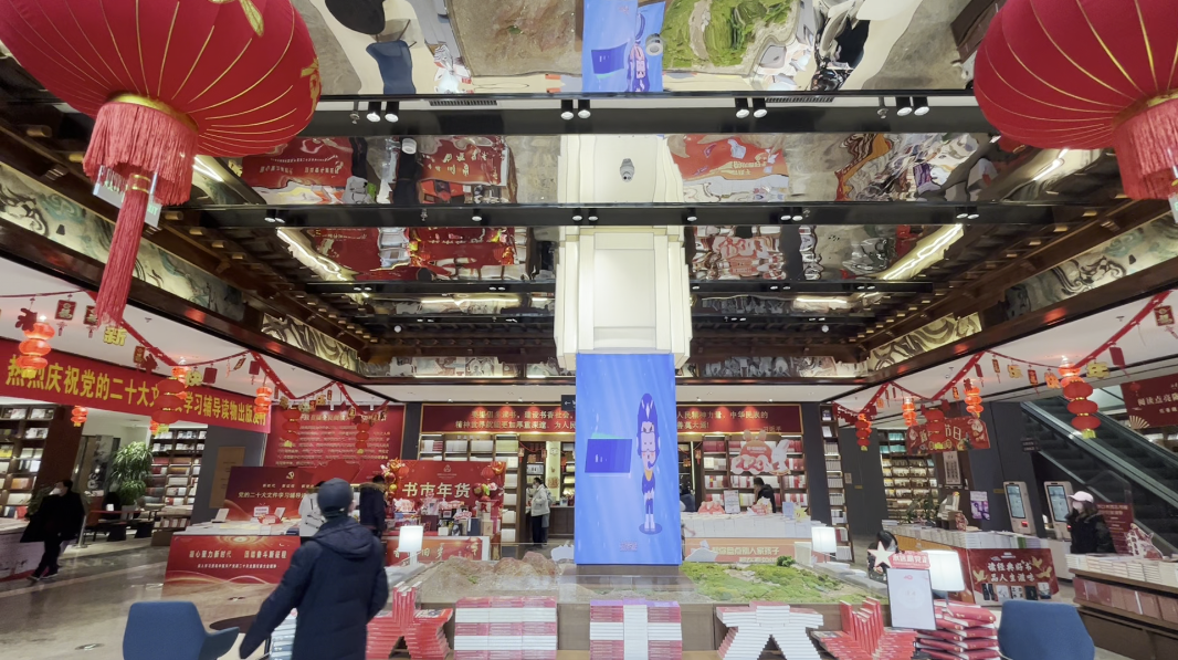 走(zou)進甘肅(su)省新(xin)華書(shu)(shu)店西北書(shu)(shu)城,這里(li)裝扮(ban)一(yi)(yi)新(xin),高(gao)高(gao)掛起的(de)(de)大(da)紅燈籠烘托出濃濃的(de)(de)年(nian)味,敦煌(huang)文化(hua)(hua)元(yuan)素的(de)(de)有機融入,讓中華優秀傳統文化(hua)(hua)在這里(li)流光溢彩(cai)。書(shu)(shu)城一(yi)(yi)樓(lou)的(de)(de)主題出版物展區,勉勵人們熱(re)愛讀書(shu)(shu)的(de)(de)標(biao)語(yu)豁(huo)然醒目 。