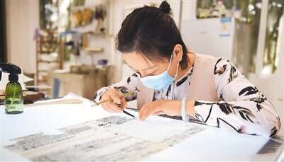安徽博物院(yuan)文(wen)物科技保護(hu)中心紙質文(wen)物修復室的工(gong)作人員對(dui)古(gu)籍文(wen)物進行修復。新華(hua)社記者 周 牧攝