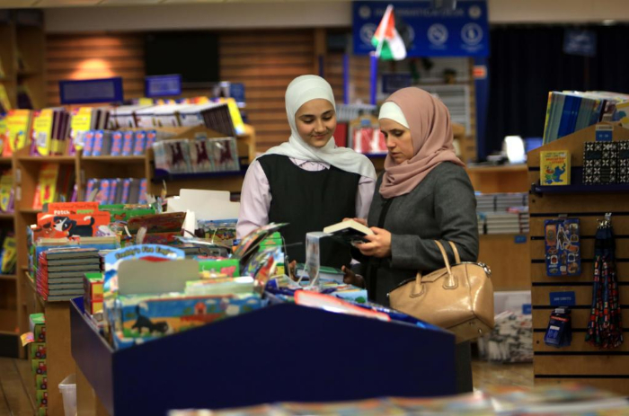 2月13日,在(zai)約(yue)旦亞喀巴(ba)港,一名女孩在(zai)“望(wang)道號”上挑選書(shu)籍。