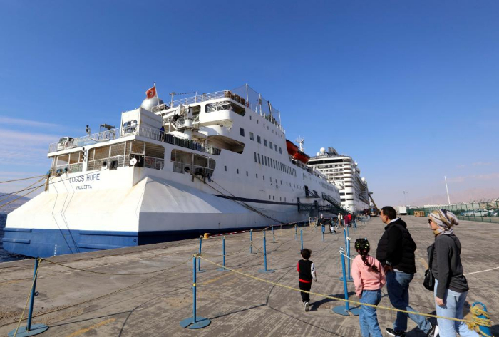 近日,海上圖書(shu)船“望(wang)道號(hao)”停(ting)靠在約旦亞喀(ka)巴港,吸引民眾購買(mai)參觀。