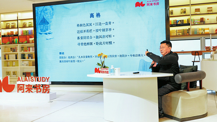 “柟(nan)樹色冥冥,江邊一(yi)蓋(gai)青。近根開藥欄,接葉制茅亭。”最先賞析(xi)的是《高柟(nan)》,這首詩很寫實(shi),并沒(mei)有驚(jing)人之語,但阿來特別將其放在首位,“從這首詩里看到可貴的自(zi)然主義(yi)精(jing)神(shen),這在今天依然能(neng)給文(wen)學(xue)寫作者啟(qi)發。”