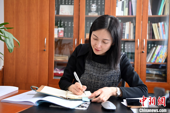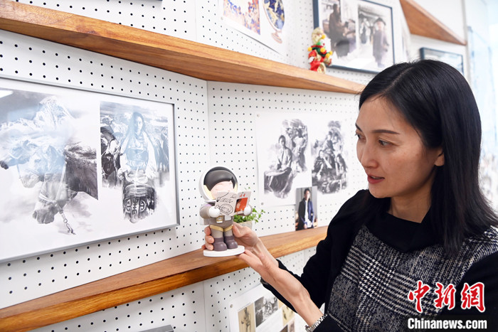 圖為2月20日,陳天竺向中(zhong)新社(she)記(ji)者(zhe)介紹(shao)讀(du)者(zhe)出版(ban)集(ji)團推出的“太(tai)空閱讀(du)者(zhe)”手辦。 中(zhong)新社(she)記(ji)者(zhe) 九美(mei)旦增 攝