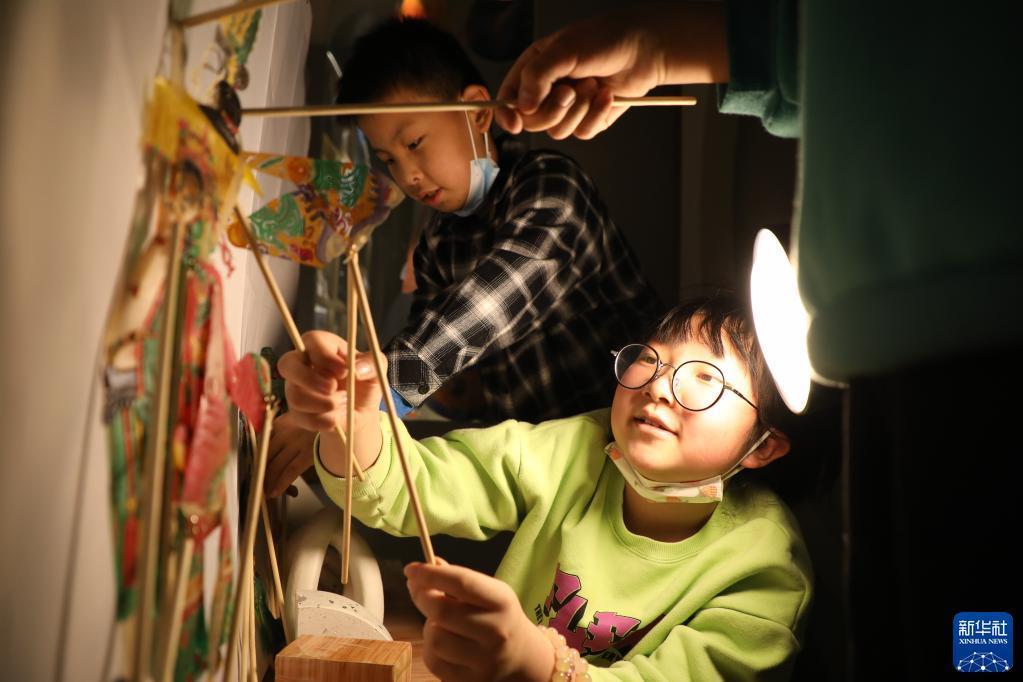 4月1日,在甘肅省蘭(lan)州市(shi)的讀者出(chu)版集團數字閱讀中心讀者小站,小朋友體驗中國神話(hua)故事主題(ti)皮影戲。新華社記者 馬希(xi)平 攝
