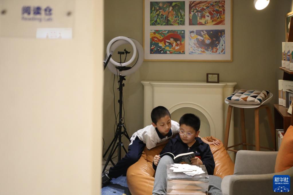 4月1日,在(zai)(zai)甘肅省(sheng)蘭(lan)州(zhou)市的(de)讀(du)(du)者(zhe)出版(ban)集團數(shu)字閱讀(du)(du)中心讀(du)(du)者(zhe)小站,小朋友在(zai)(zai)多功能閱讀(du)(du)倉讀(du)(du)書(shu)。新華(hua)社記者(zhe) 馬(ma)希(xi)平 攝