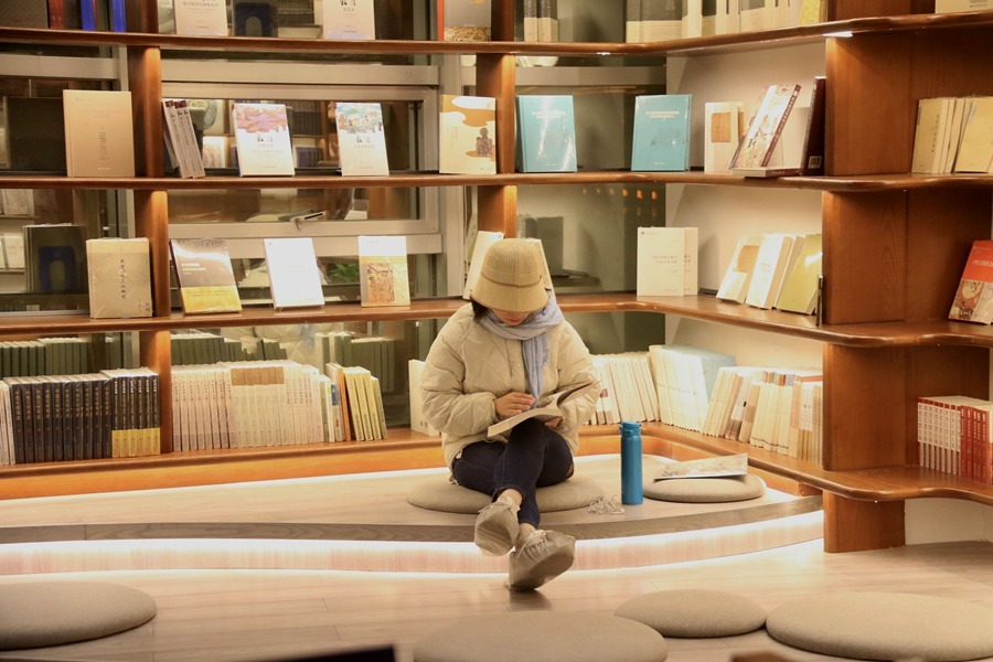 讀者在甘肅敦煌(huang)書(shu)局閱讀圖書(shu)。張曉亮(liang)攝