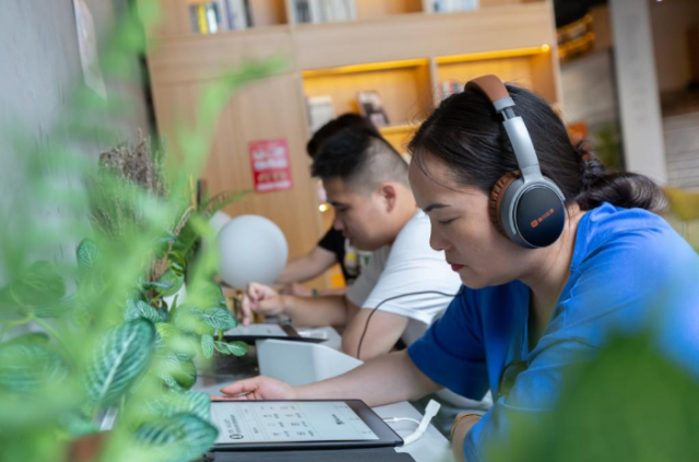 5月(yue)16日,在南昌市孺子書房(fang)·東湖意庫館,讀者利用聽(ting)書機體驗在線閱(yue)讀。