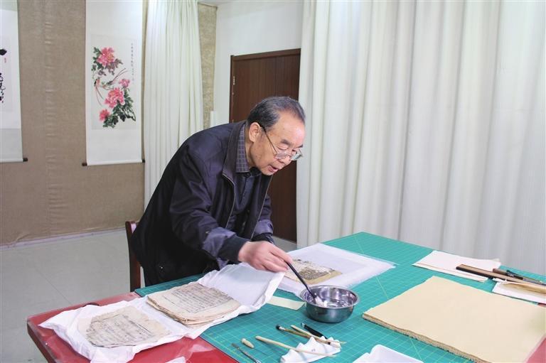 1961年至1963年,師(shi)有寬(kuan)參加(jia)了(le)(le)由(you)文化部群眾文化局在北京圖(tu)書館(國家圖(tu)書館前身)舉辦(ban)的(de)“第(di)一(yi)(yi)(yi)期裝修(xiu)古線裝圖(tu)書技(ji)術人員訓(xun)練(lian)組”,跟(gen)隨(sui)古籍(ji)修(xiu)復(fu)(fu)“國手(shou)”張世達學(xue)習(xi)古籍(ji)修(xiu)復(fu)(fu)及裝幀技(ji)術,熟練(lian)掌握(wo)了(le)(le)古籍(ji)修(xiu)復(fu)(fu)技(ji)藝。經過反復(fu)(fu)認真(zhen)研(yan)習(xi)實踐,他的(de)修(xiu)復(fu)(fu)技(ji)藝以(yi)動作靈巧、操作規(gui)范、速度快、手(shou)法(fa)細(xi)膩而著(zhu)(zhu)稱(cheng)。那(nei)時(shi),20歲的(de)師(shi)有寬(kuan)跟(gen)隨(sui)著(zhu)(zhu)師(shi)傅第(di)一(yi)(yi)(yi)次見到了(le)(le)《永樂(le)(le)大(da)(da)(da)典》的(de)真(zhen)跡(ji)。“這種真(zhen)跡(ji)一(yi)(yi)(yi)般(ban)人別說(shuo)摸,就是見一(yi)(yi)(yi)面(mian)都(dou)不可(ke)能,所以(yi)說(shuo),能夠參與《永樂(le)(le)大(da)(da)(da)典》的(de)修(xiu)復(fu)(fu)我覺得這一(yi)(yi)(yi)輩子值了(le)(le)。”回憶起當年參與修(xiu)復(fu)(fu)《永樂(le)(le)大(da)(da)(da)典》的(de)那(nei)段歲月,師(shi)有寬(kuan)的(de)臉(lian)上情(qing)不自(zi)禁地露(lu)出了(le)(le)笑容(rong)。