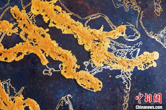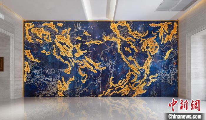 記者了(le)解到,這幅熔銅(tong)壁畫采(cai)用(yong)(yong)(yong)國(guo)家(jia)級非遺(yi)銅(tong)雕(diao)技(ji)藝(yi),結合熔銅(tong)藝(yi)術、釉彩著色等創新技(ji)藝(yi)制作而成(cheng),從(cong)設(she)計、制作、誕生(sheng),全程(cheng)歷時一年,難度很(hen)大(da)(da)。壁畫以(yi)朱炳仁手(shou)繪的(de)星(xing)空(kong)“云(yun)水墨”制作,用(yong)(yong)(yong)大(da)(da)面積深藍宇宙為底,采(cai)用(yong)(yong)(yong)熔銅(tong)藝(yi)術構成(cheng)繁星(xing)點(dian)點(dian)。
