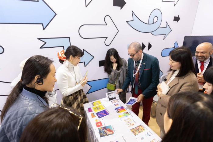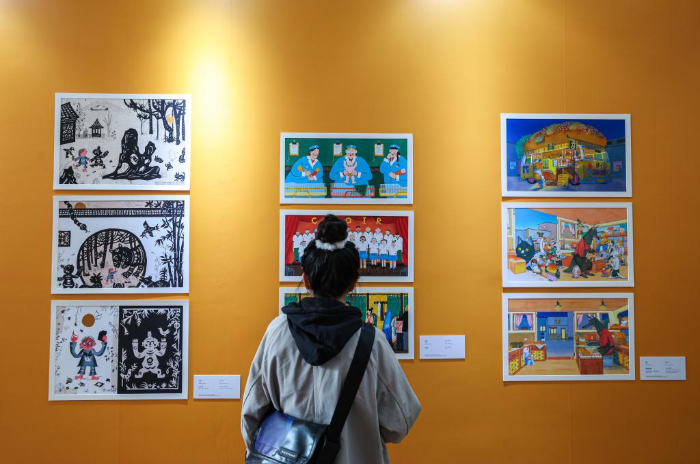 11月17日(ri),參觀(guan)(guan)者在第(di)十屆中(zhong)國上海國際童書展現場(chang)觀(guan)(guan)看(kan)“2023金風車(che)國際青年(nian)插(cha)畫家大賽”參賽作品。