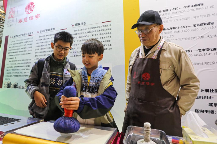 11月(yue)17日(ri),參觀者在第十屆中國上(shang)海國際童書(shu)展現場體驗(yan)活字(zi)印刷。