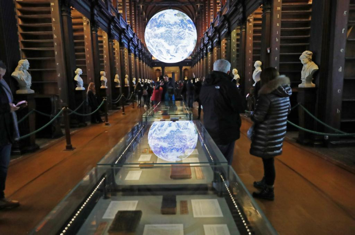 人們(men)在愛爾蘭都(dou)柏林大學(xue)圣三一學(xue)院老圖書館內參觀(1月16日攝)。