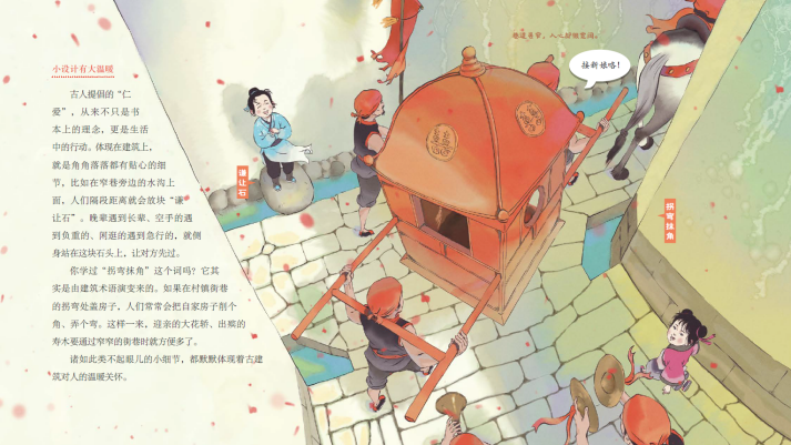 書(shu)中提到了在墻面(mian)削個(ge)(ge)角、弄個(ge)(ge)彎,“拐彎抹角”、方便大(da)家(jia)行走(zou)的(de)謙(qian)讓智(zhi)慧(hui)(hui);齊心協(xie)力(li),共同出(chu)資出(chu)力(li)蓋(gai)房子的(de)和(he)諧智(zhi)慧(hui)(hui);技術和(he)藝術并存(cun),用(yong)榫卯聯結構(gou)件(jian)的(de)建構(gou)智(zhi)慧(hui)(hui);防患于未然,保證人(ren)們生命(ming)、生活安全(quan)的(de)防患智(zhi)慧(hui)(hui)……