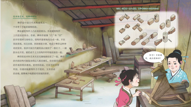 《古建(jian)筑(zhu)里的中(zhong)國智(zhi)慧》是國內首次(ci)邀請建(jian)筑(zhu)名(ming)家(jia)專門為青少年撰寫的古建(jian)筑(zhu)科普(pu)讀本(ben),分為精裝典藏版和平裝套系(xi)版,插圖精美豐富(fu),文字生(sheng)動有(you)趣,極富(fu)感染(ran)力和想象力。該書通過介(jie)紹古建(jian)筑(zhu)的美、趣、材、防、和,揭示了古建(jian)筑(zhu)在設(she)計和建(jian)造過程(cheng)中(zhong)的中(zhong)國智(zhi)慧,帶領(ling)大(da)家(jia)徜徉古建(jian)筑(zhu)的趣味世界。2023年4月,《古建(jian)筑(zhu)里的中(zhong)國智(zhi)慧》入選(xuan)國家(jia)出版基金(jin)資助項目,受(shou)到廣(guang)泛關注。
