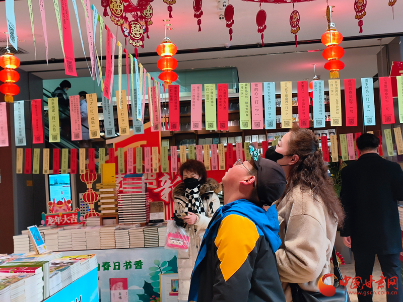 中(zhong)國甘肅網2月21日訊 (西北角·中國甘(gan)肅網記者 張蘭琴)這個周六(liu)就是元宵(xiao)節,從今天開始,甘(gan)肅省新華書(shu)(shu)店(dian)在(zai)全(quan)省各門店(dian)開展(zhan)的(de)猜燈謎(mi)活動(dong)拉開了(le)鬧元宵(xiao)系列活動(dong)的(de)序幕(mu),也將“書(shu)(shu)香潤隴原 文化過大年(nian)”系列活動(dong)推(tui)向高潮(chao),進一步讓“進書(shu)(shu)店(dian)過大年(nian)”成(cheng)為(wei)新時(shi)代年(nian)俗和龍年(nian)春節里一抹(mo)亮麗(li)風景(jing)。