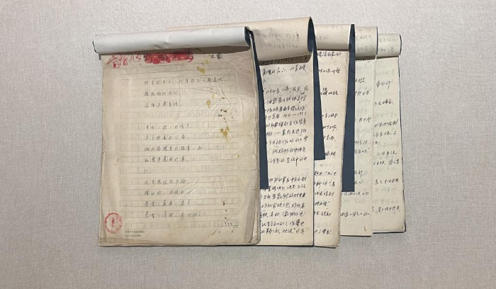 在展覽“青春(chun)(chun)萬歲”單元(yuan),一件珍貴的(de)(de)展品吸引眾人目光——5卷泛黃的(de)(de)稿紙上,寫(xie)著一行行藍色鋼(gang)筆字,這正是王蒙創作《青春(chun)(chun)萬歲》的(de)(de)初稿。