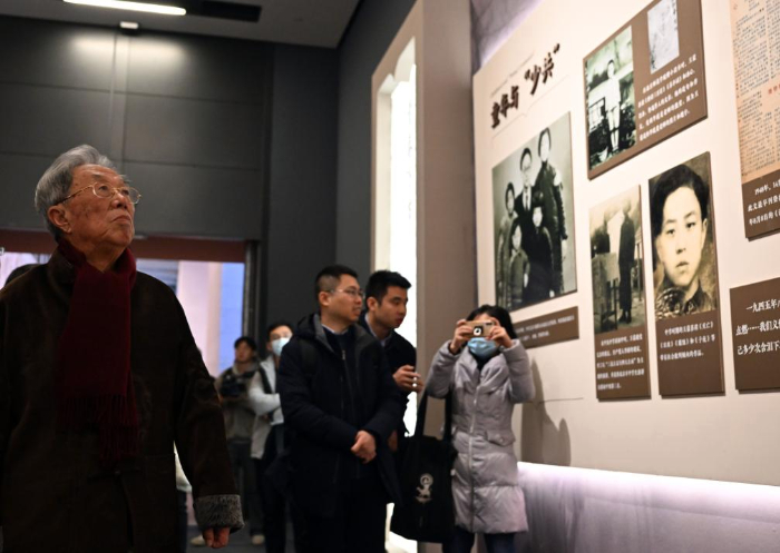 2023年12月21日,作(zuo)家(jia)王蒙(meng)(左一)參觀展覽。新(xin)華(hua)社記者 金良(liang)快 攝