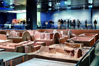 在(zai)二樓展(zhan)廳展(zhan)出的(de)名為“陶”的(de)文物,形(xing)狀呈圓(yuan)餅狀,表面(mian)微微凸起,密(mi)密(mi)麻麻,這(zhe)是商朝人(ren)洗(xi)澡時的(de)清(qing)潔(jie)用具(ju)。殷(yin)墟考(kao)(kao)古(gu)(gu)發(fa)掘工作(zuo)中,發(fa)現一(yi)種車(che),車(che)前俯身埋著兩(liang)個人(ren),這(zhe)很可能是一(yi)種人(ren)力車(che),文獻稱為“輦車(che)”。在(zai)“車(che)轔轔,馬蕭蕭”展(zhan)廳,社科院考(kao)(kao)古(gu)(gu)所現場考(kao)(kao)古(gu)(gu),把(ba)發(fa)掘過程展(zhan)示給游客。