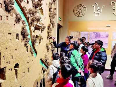 在殷墟博(bo)物館新館參(can)加研學活動的孩(hai)子們聆(ling)聽講解。殷墟博(bo)物館供圖(tu)