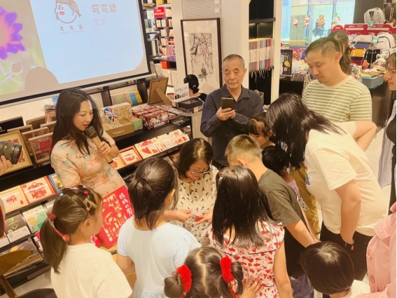 北京航(hang)空航(hang)天大學新(xin)媒體藝術與設計學院教(jiao)授顏(yan)新(xin)元為作者獻花,并與劉雪純、彎彎以及小朋友們(men)一起(qi)為“彎彎工作室”揭幕(mu)。