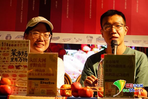 《菜市場里有萬物》作(zuo)者陳(chen)瑤(左)和《呼(hu)叫(jiao)仙貝》主播張老(lao)師(右)