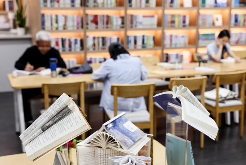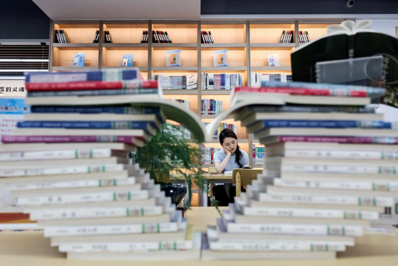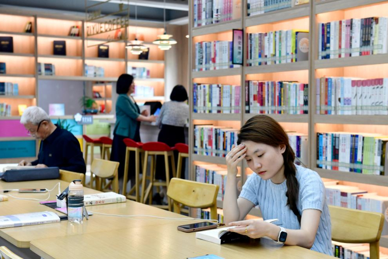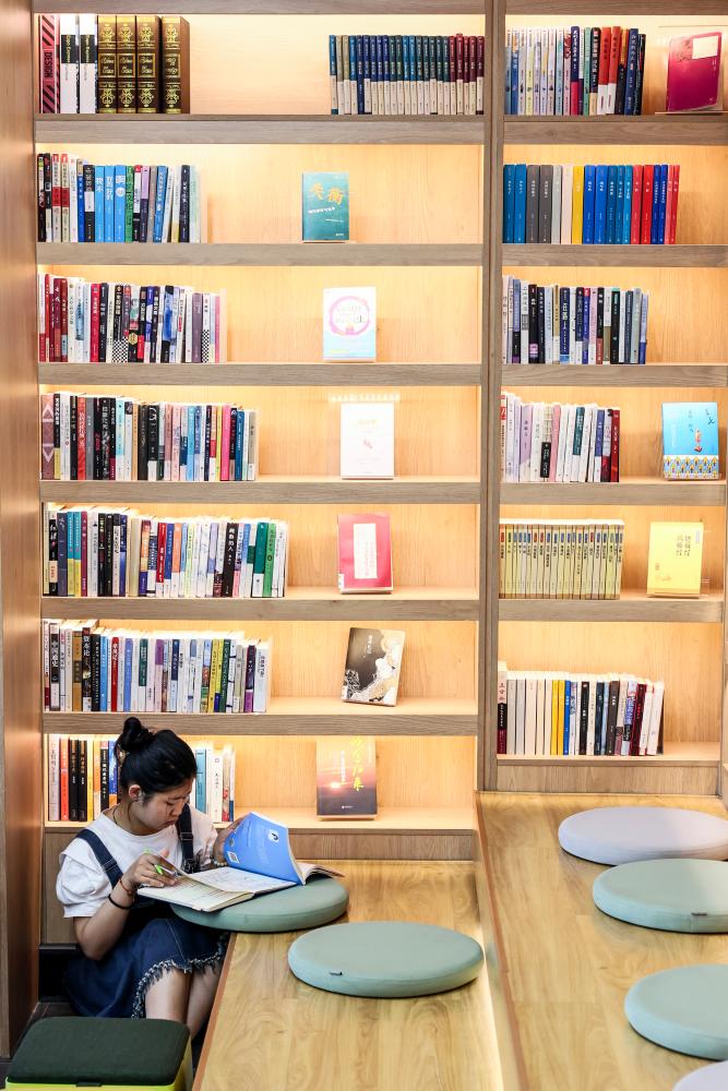 5月23日,讀(du)者在日照(zhao)市東港區城市書房櫻花園館閱(yue)讀(du)。