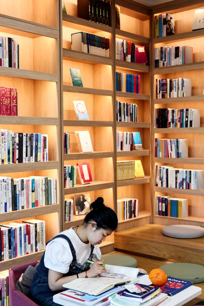 5月23日,在日照市東港區城市書房石臼所(suo)館,讀者從書架(jia)上取(qu)書。