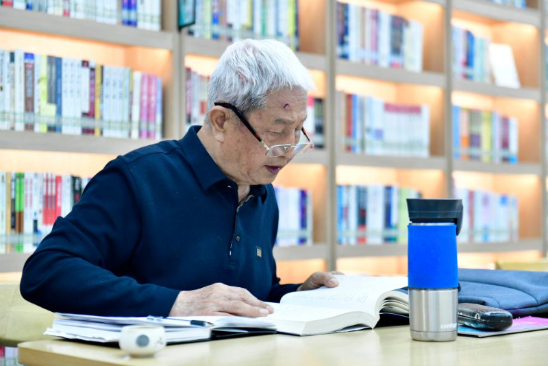 5月23日,讀者(zhe)在日照市東港(gang)區(qu)城(cheng)市書(shu)房櫻花園館閱讀。