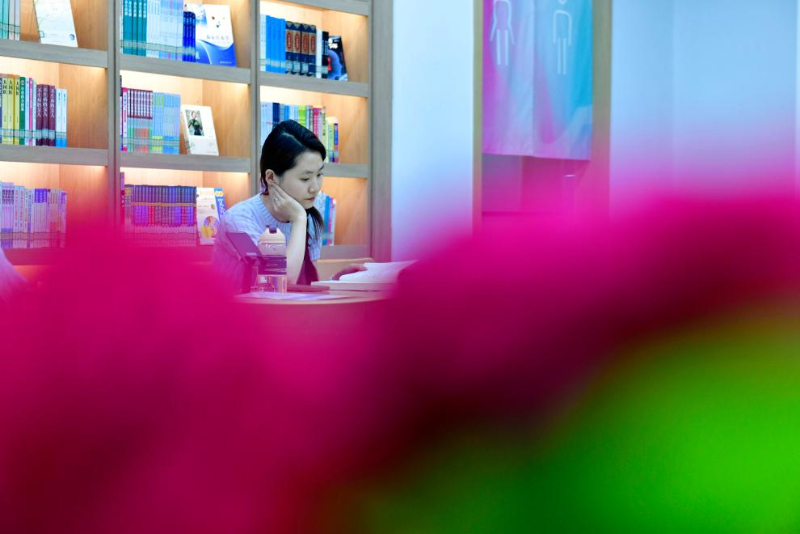 5月23日,讀者在(zai)日照市東港區城(cheng)市書房櫻花園館(guan)閱讀。