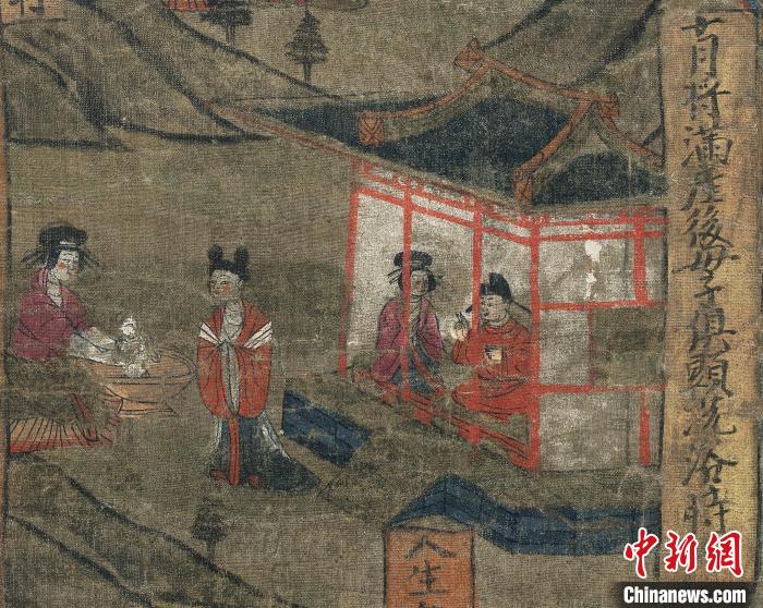 圖為(wei)“報父母(mu)(mu)恩重經變絹畫(hua)”中(zhong)的“十月將滿,產后母(mu)(mu)子俱顯,洗(xi)浴(yu)時”的畫(hua)面(mian)。(資料圖)甘肅省博物館供圖